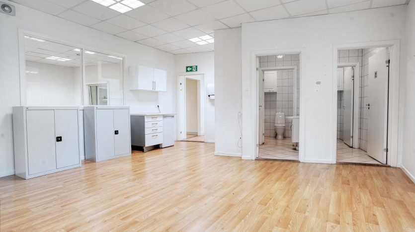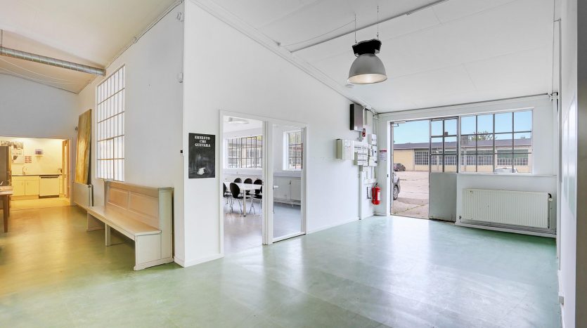 Ejendommen er indrettet med præsentabelt udstillingsområde med klinker samt værksteder med porte og i alt 8 nagelfaste lifte, som medfølger. Derudover køkken/spisestue, omklædningsrum, bruseafd. samt toiletkerner og administration/kontor. Se gerne plantegningen på side 7.
