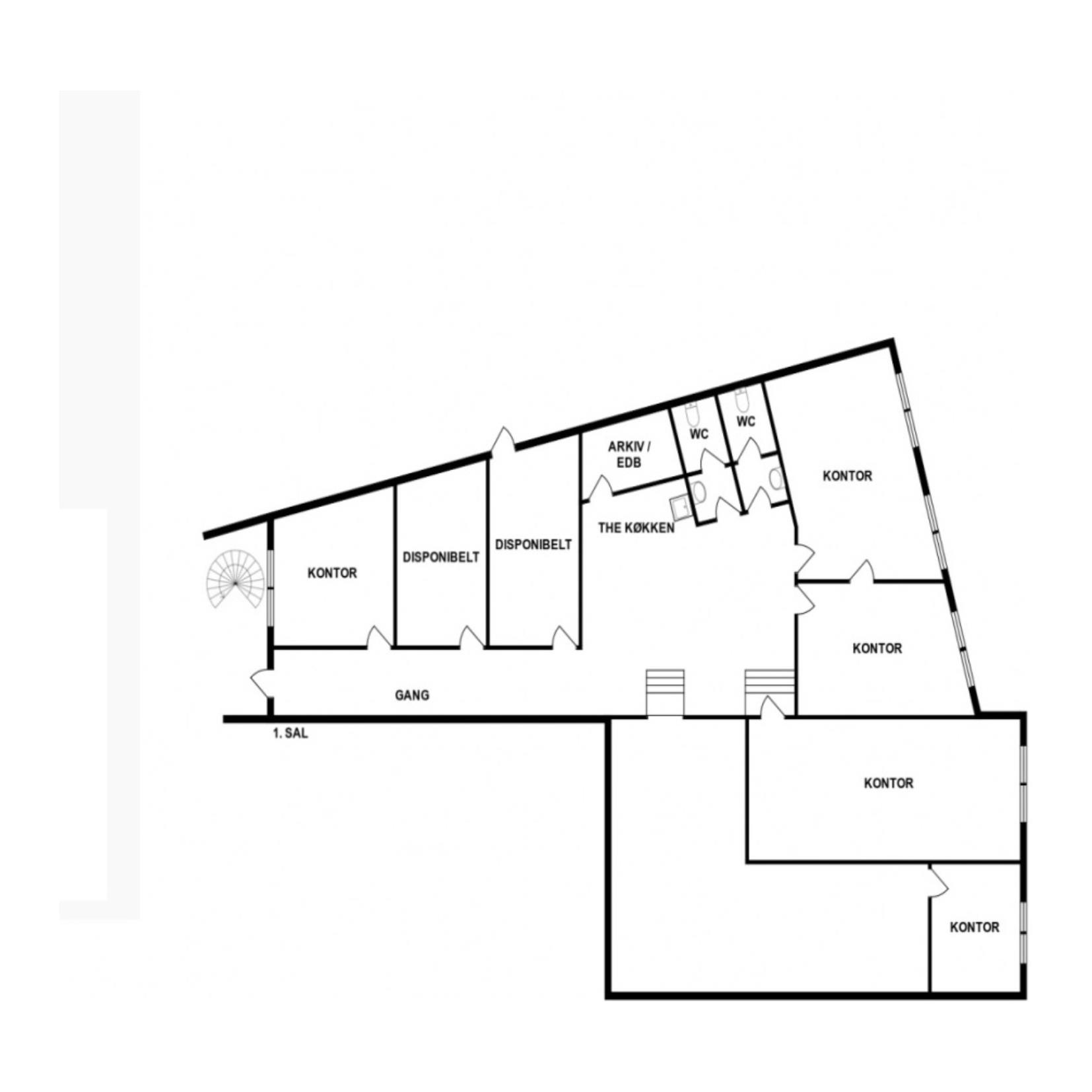 Derudover er der udnyttet tagetage på 100 m2 som er indrettet til opbevaring/arkiv mv.